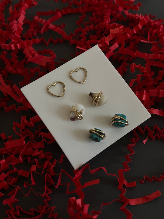 Set of 3 • Stud Earrings | Pearl + Turquoise + Bullet