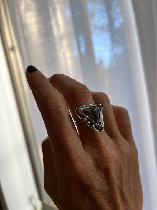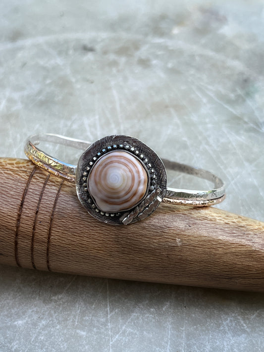 Honey Cowrie Mixed Metal Ring