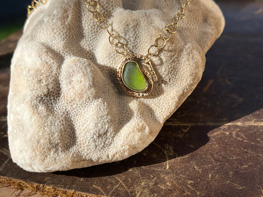 Shark tooth x sea glass pendant