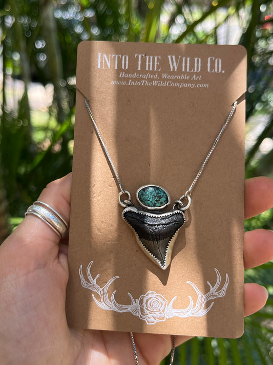 Hand Forged Shark Tooth & Turquoise Necklace