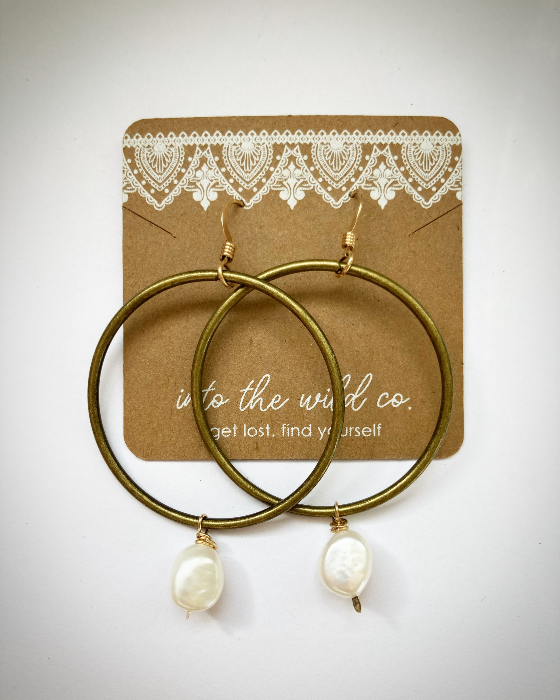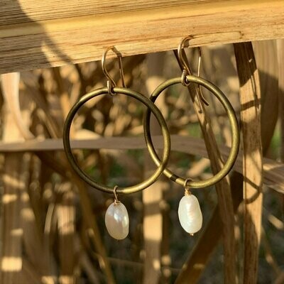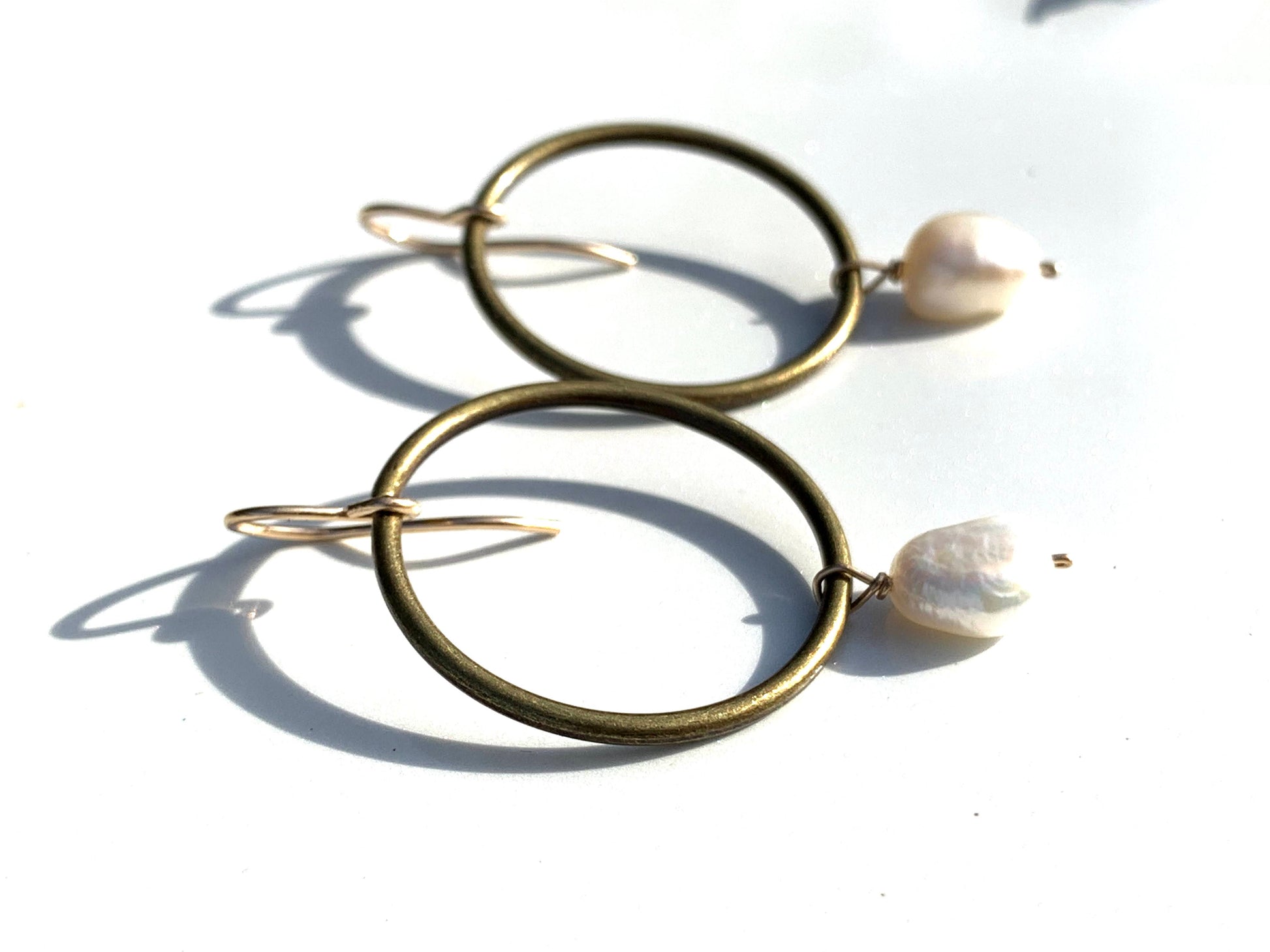 Seamless Antique Brass Hoops Accented With Beautiful Baroque SW Pearls Finished 14Kt gold filled earwire